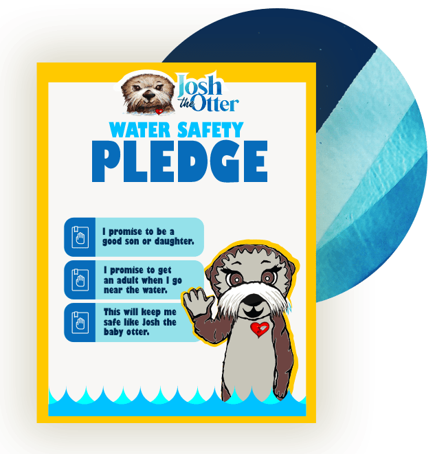 Did you know that otters are known for their tremendous floating skills? That's right, otters LOVE to float, and they're exceptional at it too. They're so good that a group of resting otters is called a raft - a sturdy, floating object. Otters love to float in groups. Researchers have seen concentrations of over 1,000 otters floating together. How fun! This makes Josh the Otter the perfect example for our children. We teach kids how to float on their backs like otters so they can stay safe in any water situation. And we ask them to take the safety pledge where they promise only to enter the water with adults and when other people are around (just like otters!)